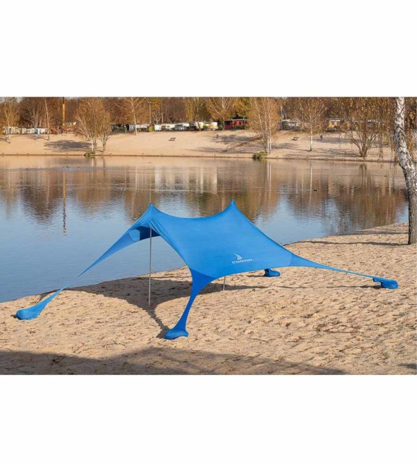 Den ohnehin verfügbaren Sand am Strand nutzen, um das Zelt stabil zu halten, war die Idee. Dadurch ist es uns möglich, ein stabiles und vielseitig einsetzbares Sonnensegel anzubieten, das ein geringes Gewicht und kleines Packmaß bietet. Die integrierten Sandsäcke bringen die notwendige Stabilität und eine außergewöhnlich schöne Form. Immer dabei für endlos viele Einsatzmöglichkeiten. Perfekt für den Einsatz am Strand, auf der Wiese und im Garten bietet es Euch Schutz vor den Elementen. Neu und innovativ, Sonnenschutz einfach mal anders.