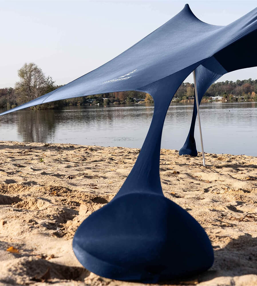 Den ohnehin verfügbaren Sand am Strand nutzen, um das Zelt stabil zu halten, war die Idee. Dadurch ist es uns möglich, ein stabiles und vielseitig einsetzbares Sonnensegel anzubieten, das ein geringes Gewicht und kleines Packmaß bietet. Die integrierten Sandsäcke bringen die notwendige Stabilität und eine außergewöhnlich schöne Form. Immer dabei für endlos viele Einsatzmöglichkeiten. Perfekt für den Einsatz am Strand, auf der Wiese und im Garten bietet es Euch Schutz vor den Elementen. Neu und innovativ, Sonnenschutz einfach mal anders.
